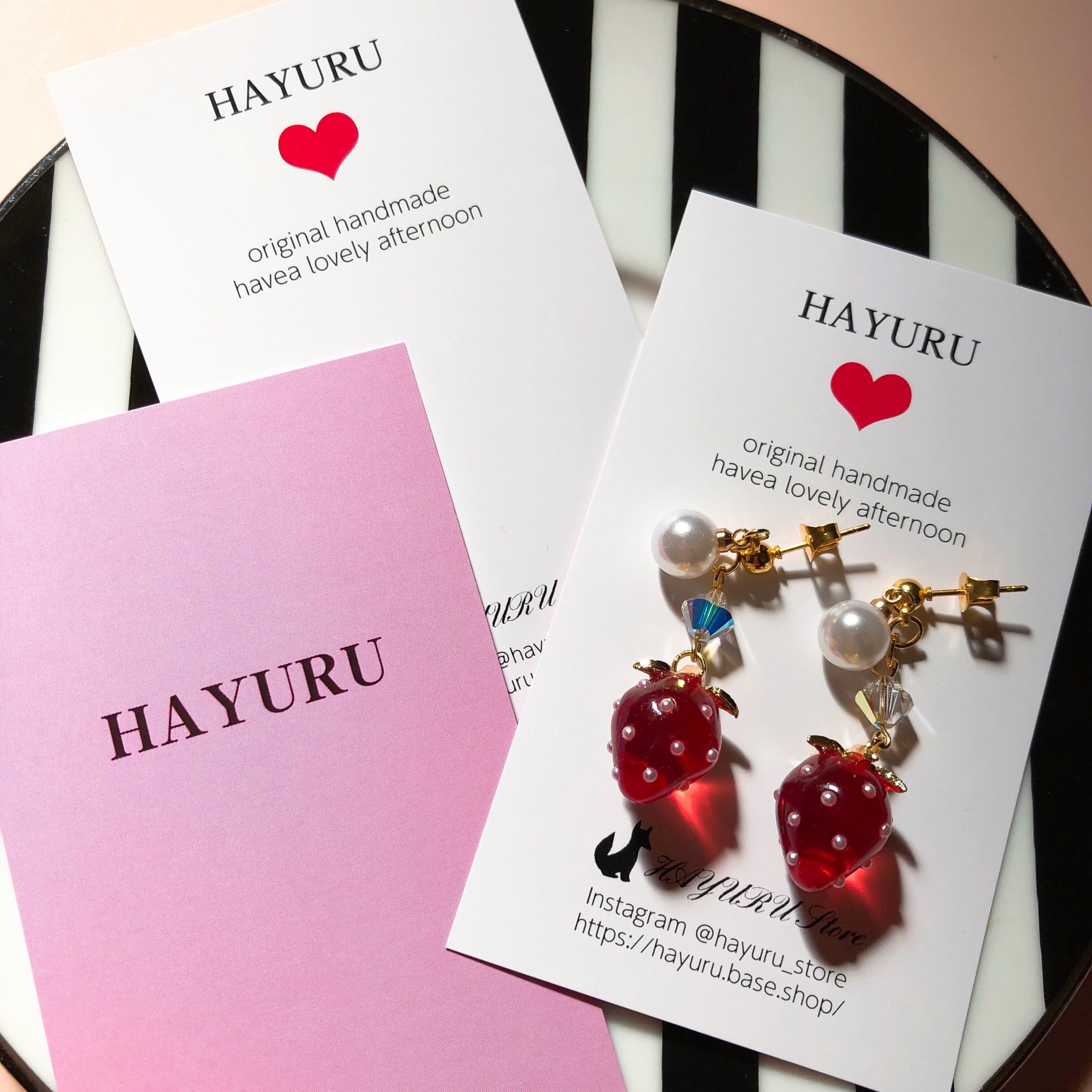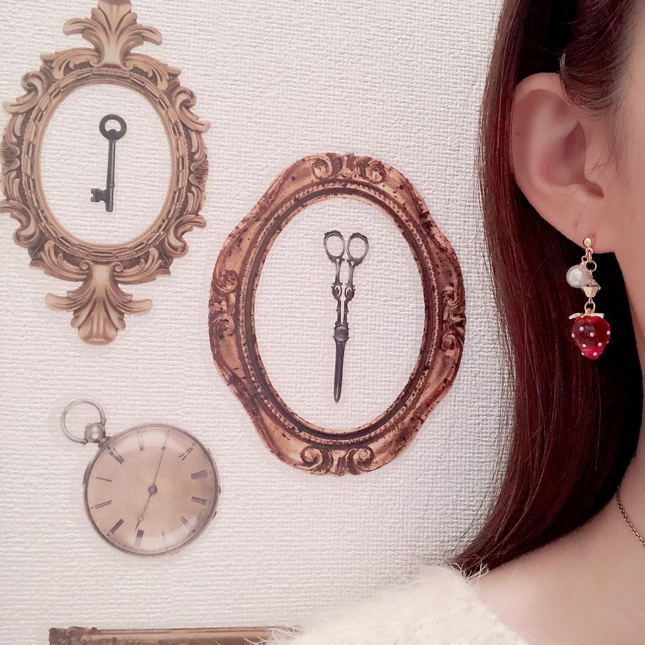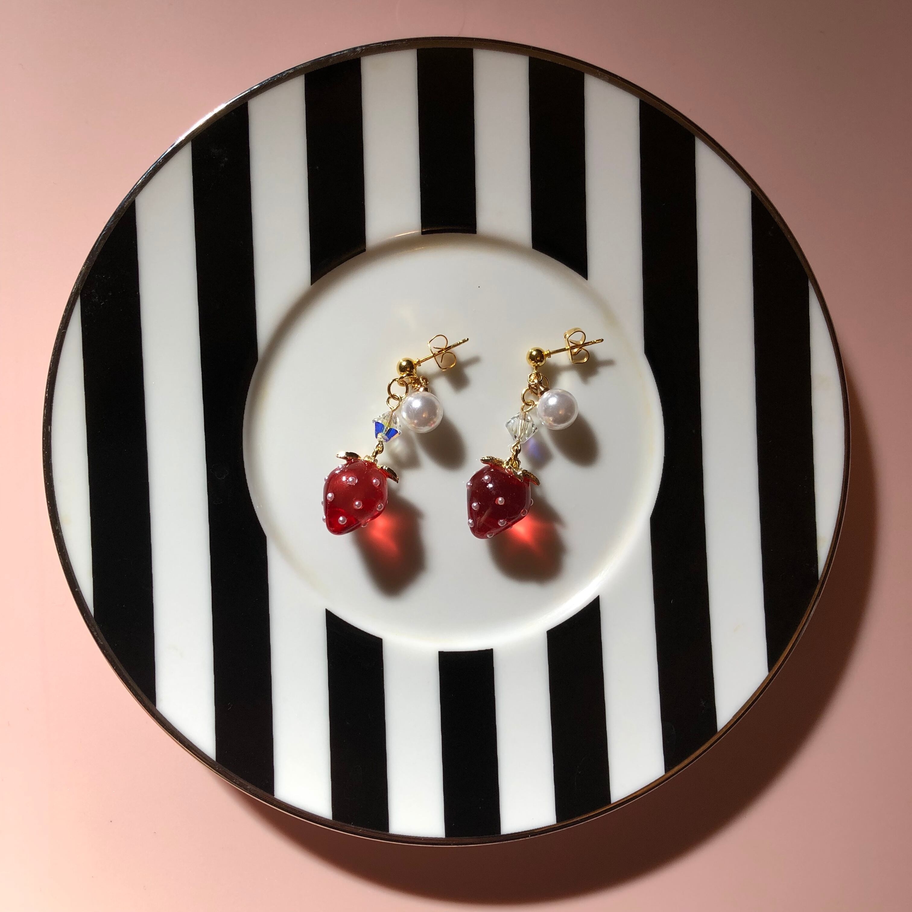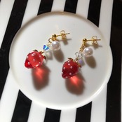 パールとオーロラスワロフスキービーズを使った可愛い苺のピアスです。