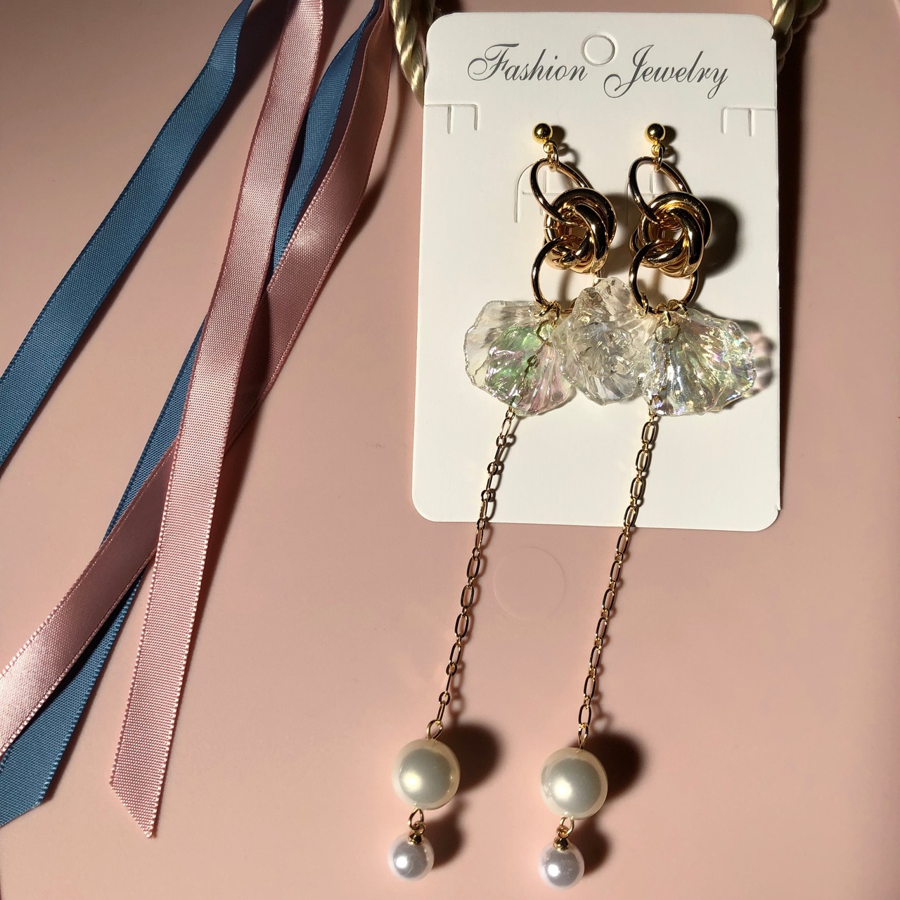 オーロラ花びらとパールのピアス